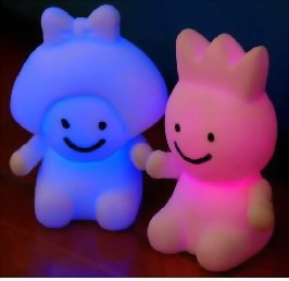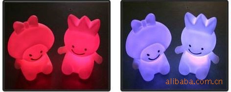 产品底部有一黑色开关,推动开关,产品七彩渐渐变换颜色。