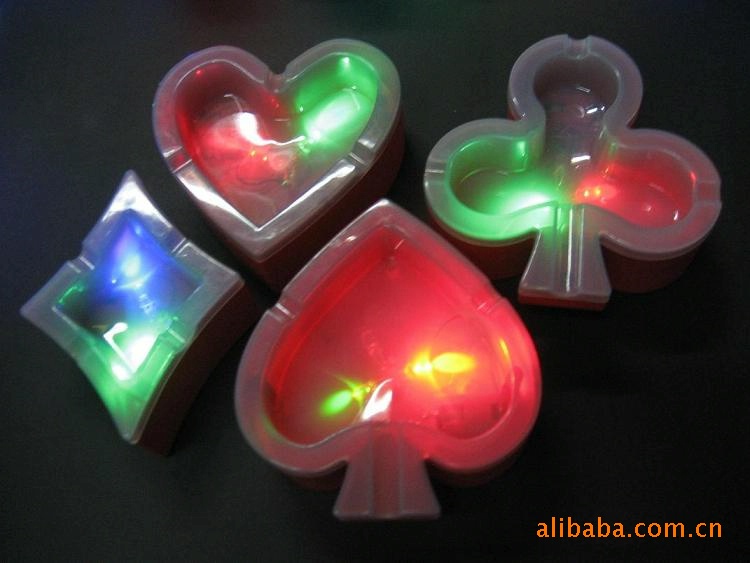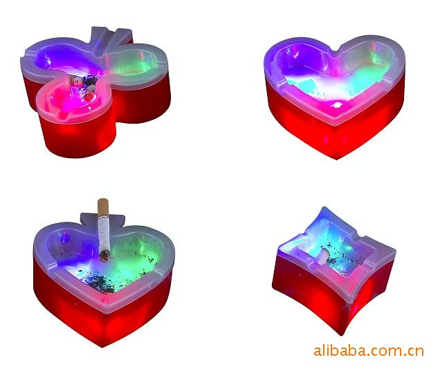 我司生产各种发光物品,该款发光烟灰缸设计精致,打开底部开关会出七彩的灯光,闪光颜色分为:红、蓝、绿等,是家庭、酒店、餐厅茶几上离不开的物品.