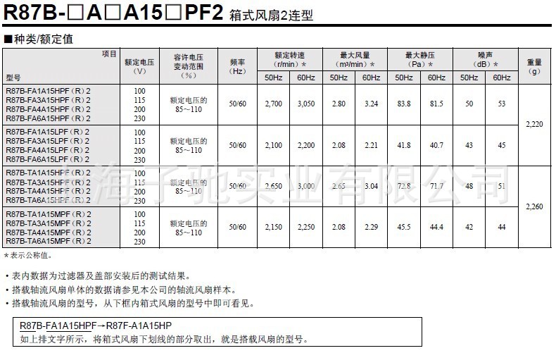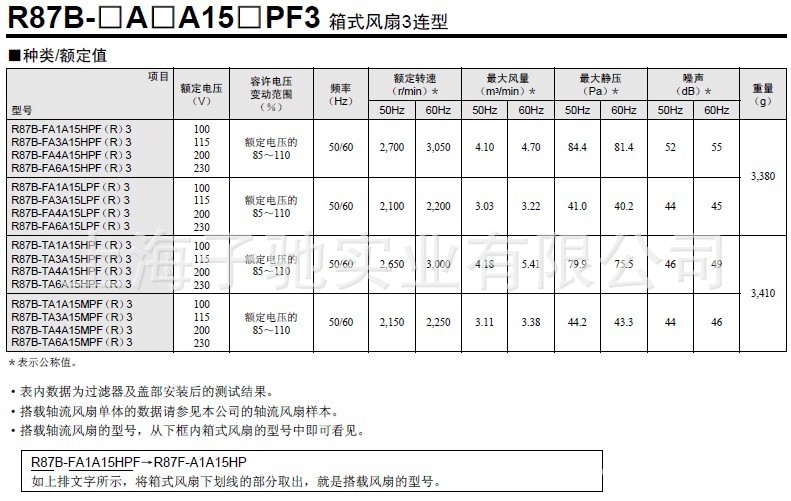 R87B-N R87B-N2 R87B-N3 R87B-PF01 箱式风扇配件
