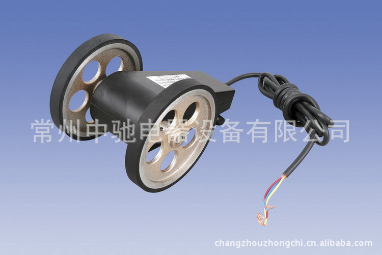 本公司生产的JMQ系列长度测量计米轮广泛应用于包装、印刷、造纸、纺织、印染、橡胶、塑料、线材、等行业中各类传动设备上作为精密长度测量装置。计米轮分为三种型号规格:JMQ-1(米级)、JMQ-2(分米级)、JMQ-3(厘米级)。计米轮的轮盘是由特种耐磨防滑橡胶合成材料与铝合金轮盘框架组合而成,长期使用磨损很少,确保计量精度;内部电路采用独特的设计方法,抗干扰能力强:因而整机具有性能稳定可靠,故障率低等显著优点。