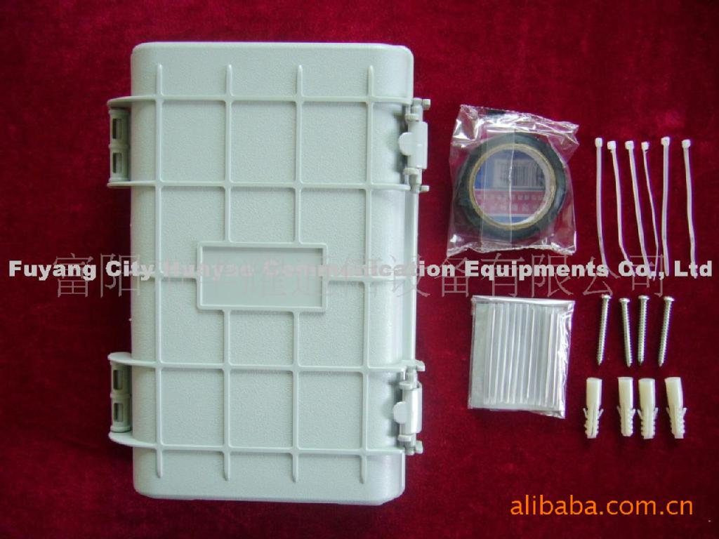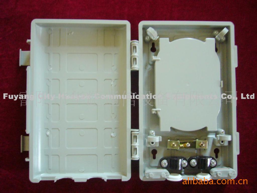 GP-HY-C型光缆(用户)终端盒,是本公司精心开发、研制和创新的实用新型专利产品。结构设计是左右开启式,打开方便(适用了目前最易操作卡扣式开启)光缆和尾纤单面进出,安装方便可靠。终端盒外壳材料采用高强度工程塑料,有较好的机械强度,外形美观大方,坚固耐用。光纤熔纤盘是左右翻转式设计,打开角度达180度,便于光纤的安装和维护。尾纤固定采用进口弹性体材料,用压卡式的方法进行安装极为方便。当尾纤配线不确定使用时(暂不使用)可将尾纤盘入盒内走线环,等到需要使用时再将尾纤活动连接头装出盒外,这样不需要通过适配器(法兰盘)连接就能直接与终端设备联接,如果客户有需要同时盒内也可以安装两只适配器(法兰盘)更利于施工。