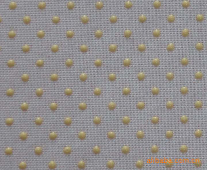 本厂专业生产点塑止滑布,止滑布行业称之为点塑布 滴塑布 滴珠布 珍珠布 及印点布。(可做和加工PVC点塑,低毒环保PVC滴塑,出口欧美环保测试点塑,正宗硅胶滴塑)因其有特殊的防滑性及美观的装饰效果而广泛用于制鞋 玩具 地毯及工艺地毯 手袋 手套 及汽车坐垫 需要防滑的产品和服装装饰面料 床垫 沙发套家居产品方面。我厂的规格有4mm×4mm、6mm×6mm、8mm×8mm、10mm×10m、13mm×13mm、16mm×16mm、25mm×25mm 、梅花点、细密点、小飞机、五角星、动物脚印点、乱点、及其他的异型点,也可根据客户的要求定做各种的点距和图案。可在T/C布、斜纹布、化纤布、无纺布、帆布、麻布、边纶布、耐吉龙、牛津布、毛绒、EVA革、PVC革、PVC/布料复合布、草席布上印点和图案,宽度为80cm----2400cm