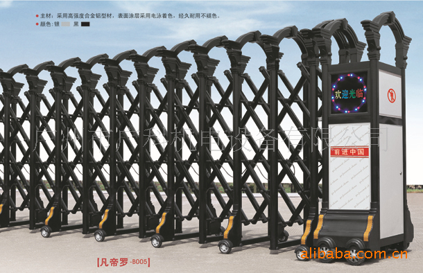 pc材料一次压铸成型,联接螺栓、螺丝全部采用不锈钢,转动绞链孔全部镶嵌高强度尼龙耐磨套,与主材圆管紧密结合,使门体更加牢固,运行更加平滑行走系统分有轨或无轨两种,无轨运行为机器人电脑控制,电子导航、自动纠偏;先进的软驱动及防撞功能使产品性能更优越;24小时电子显示系统:欢迎词、曰期、时钟一目了然。