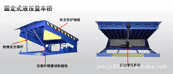 产品说明:固定式液压登车桥是实现货物快速装卸的专用辅助设备,它的高度调节功能使货车与库房的货台之间架起一座桥梁,叉车等搬运车辆通过它能直接驶入货车内部进行货物的批量装卸,仅需单人作业,即可实现货物的快速装卸。它使企业减少大量劳力,提高工作效率,获取更大经济效益。