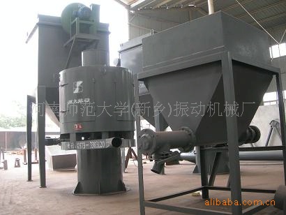 气流筛粉机与气固分离除尘装置组成闭路筛分系统。主机是气流筛粉机,筛体的密闭外壳内装有立式圆周筒形筛网;筛网内侧有圆周形风轮,由装于底座上的电动机驱动旋转;筛体外壳的正上方装有进料斗及粗筛,下部设有排渣口;电动机与主轴为皮带连接;风轮料斗下口形成进料间隙。气固分离除尘装置由引风机,沉降室和除尘布袋组成,气流筛与分离除尘装置之间由塑料波纹软管连接。