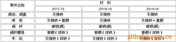 明杆楔式闸阀 主要零件材料