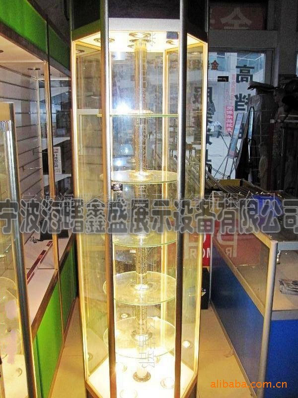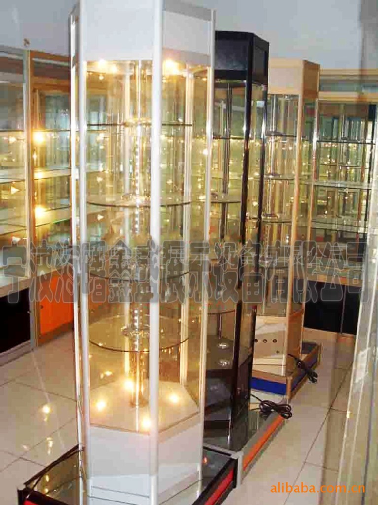 此款旋转展架,旋转展示架含8套牛眼射灯,1套日光灯、玻璃开门带锁.