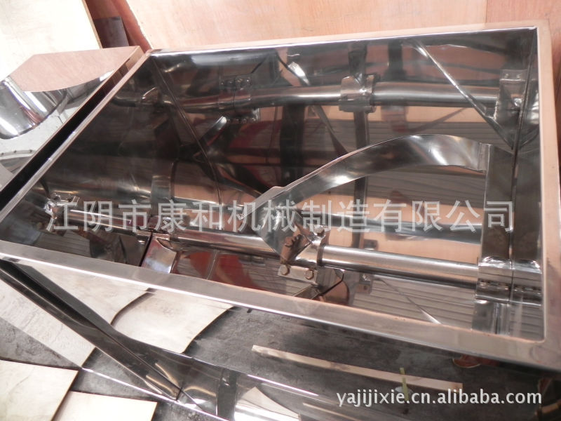 本机为全不锈钢卧式槽形混合机,在制药、化工、食品工业中用于混合粉状或糊状的物料。