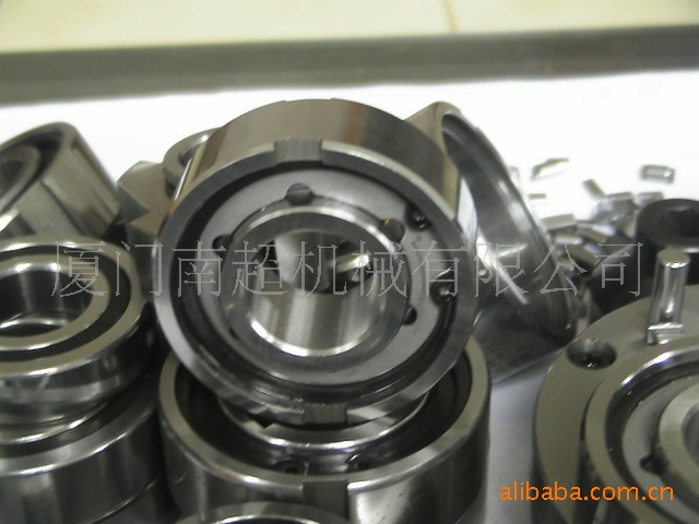 本公司成功研发了高效型凸轮式单向轴承,根据传统国内外易损的滚柱式结构的单向轴承,重新进行特殊工况设计,技术分析,并将其应用于空气清洗设备,农业机械,压缩机,输送机包装机,印刷机,冲床和送料机,动力设备,备用动力装置,纺织机,减速机等等设备上。且根据轴承行业标准,在保持原有的通用件的基础上,改变了现行超越离合器的结构,使得结构更简单、合理。同时利用凸轮精准定位,达到全同步效果,提升原扭矩多倍以上。其中凸轮采用SUJ2材料纳米加工方法,尺寸精度达高,工作面采用对数螺旋线曲面设计保证其长寿命。