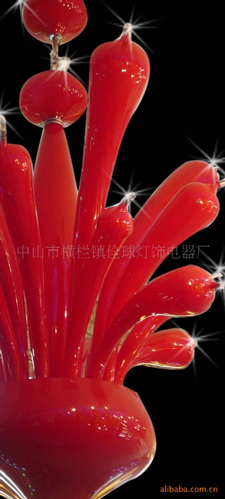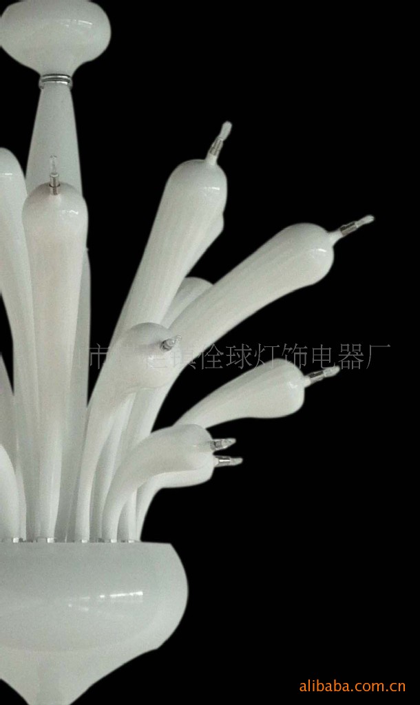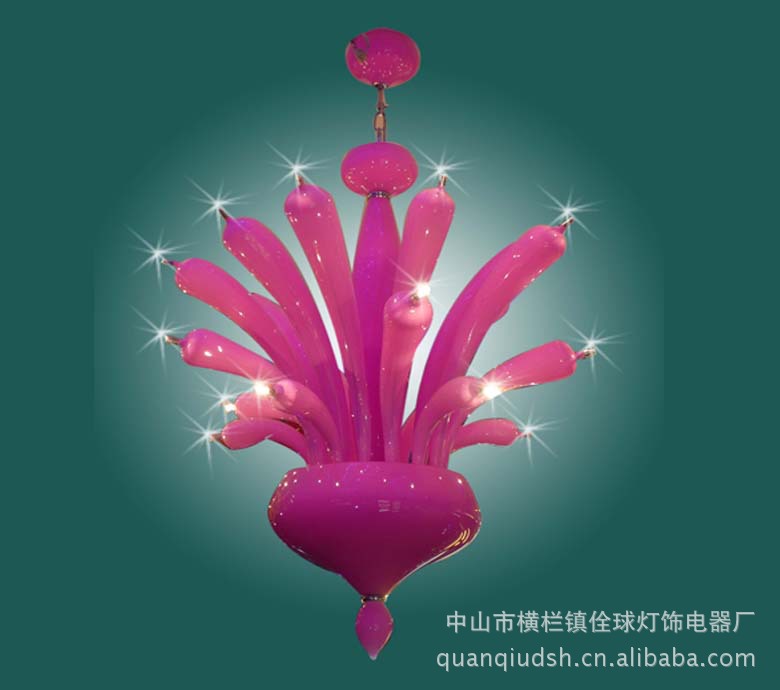 这是一款2011年新款主打灯。以牛的角展开想象设计的,采用各种姿态的玻璃牛角构成的一款花灯,其它部分均为金属。有多种颜色,设计结构虽简单却又不失优雅大方,它的材质是玻璃,更显透光度。它的形态优美,颜色清雅动人。所以这款灯无论是各方面所具备的特色都成为你选购的理由。