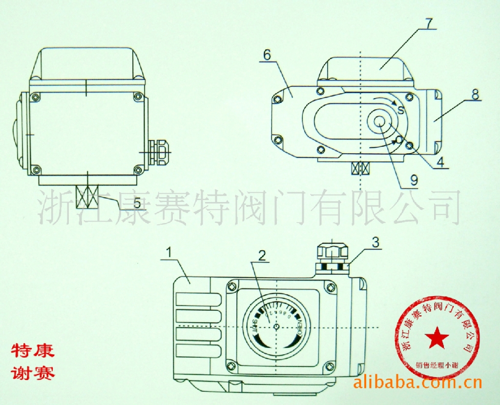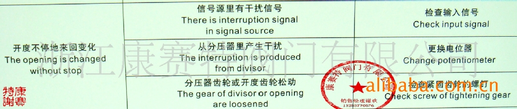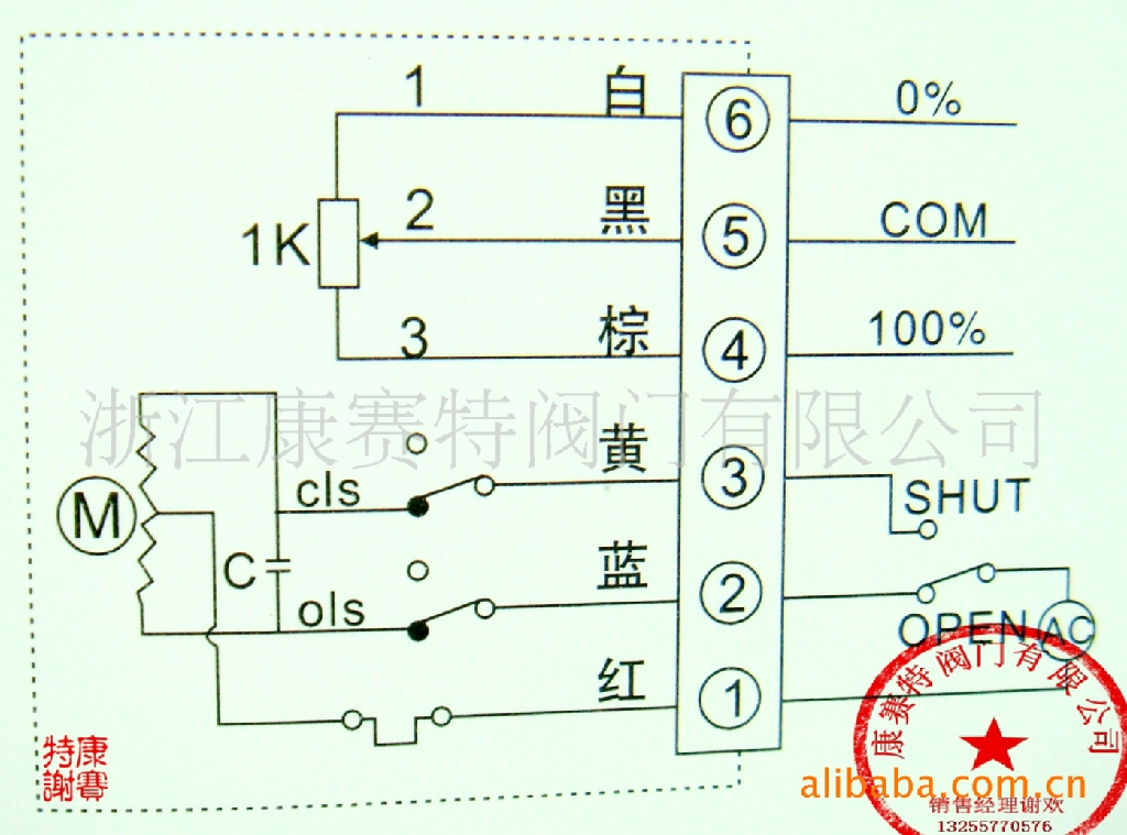 ●端子6为电位器高端,“关”运行时,端子6和5之间的阻值随着阀门的关闭而增大。