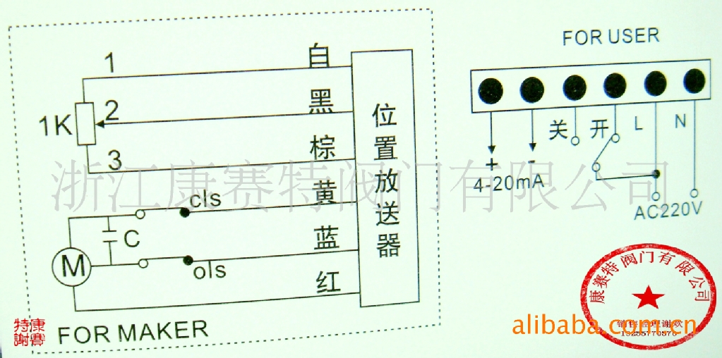 通过开关电路实现阀门的开关操作,同时输出去阀门开闭角度相对应的电流信号。