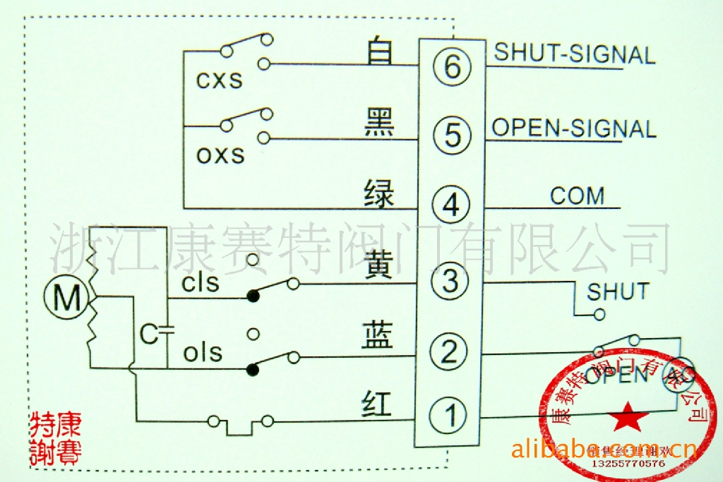 ●电源相线与端子3接通时,如果“关”运行到位,端子5所接“全关信号”指示灯亮。
