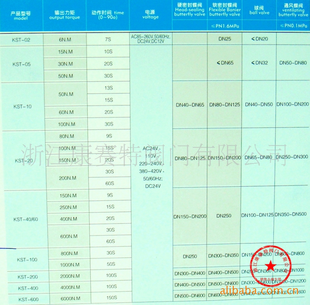 5、康赛特KST系列电动执行器每种型号均有以下几种输出类型: