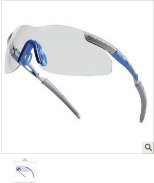 运动款整片式透明聚碳酸酯镜片防护眼镜,复式材料镜腿,软质撑脚。软质PVC鼻梁架,与面部贴和度极佳。