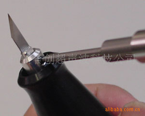超声波切刀式切割机是直接将超声波能量加载到切刀上,切刀就变成一把带有超声波的切刀。在切割材料时,材料主要是被超声波能量软化和熔化的,切刀的刃口只是起到切缝定位、超声波能量输出、分隔材料的作用。这种切割方式适用于粗、厚、长等不方便设置砧板的材料的切割。如炼胶机输出的生胶分切,管子切割,冻肉、糖果、巧克力切割,印刷线路板,或手持式切割机等等。