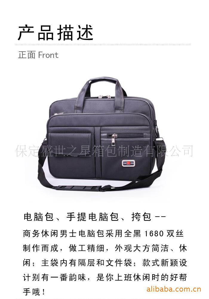【内部结构】包包主袋拉链封口,内部为电脑隔层袋及文件袋