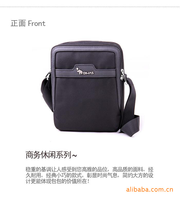 【名称】 爱华仕休闲斜挎包【产地】 中国【品牌】 爱华仕【型号】 OCK500103002【品质】 一等品【材料】 高级防水面料+顶级尼龙【颜色】 黑色 【重量】 0.5KG【尺寸】 包包从左至右最宽处约23cm,从上到下高约27cm,底厚约9cm,斜挎带长约120cm(可调节)【内部结构】 包包主袋拉链封口,两个主袋,内有一个拉链壁袋,一个小隔层,如图所示【实物点评】 图片仅做款式参考,产品说明为了您了解此包的辅助说明,请以实物为准。