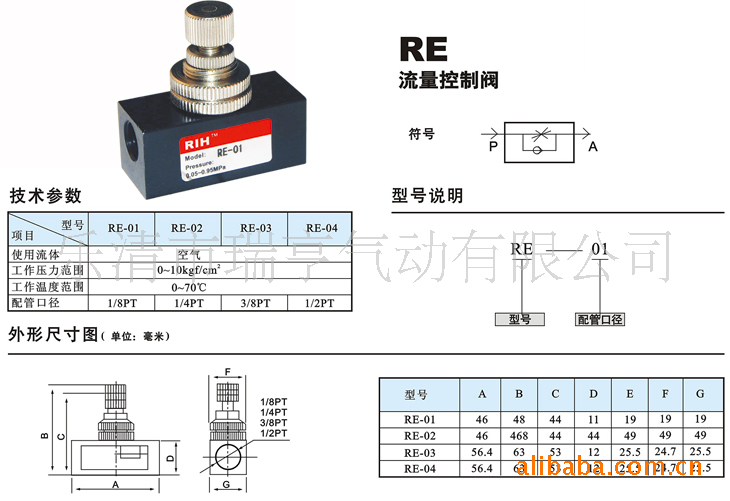 阀类 节流阀 单向节流阀 RE-03 G3/8 ; RE-04G1/2 :