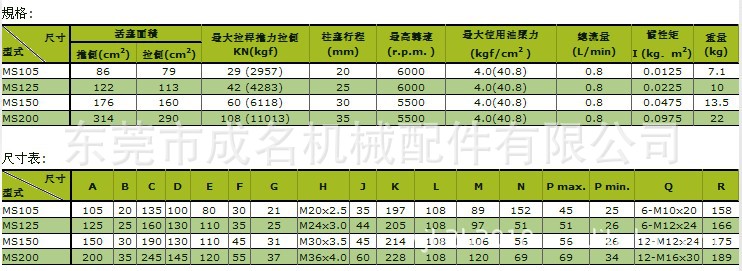 中实油压回转缸(含逆止阀):MS105. MS125. MS150.