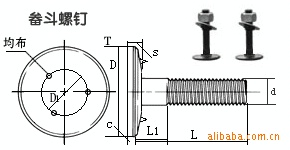 头部螺杆侧端面有3个凸起尖爪,在旋紧螺母时,可防止螺钉跟着旋转;适用于提升物料容重轻,线速度较低的塑料畚斗的安装,是一种经济适用的螺钉。