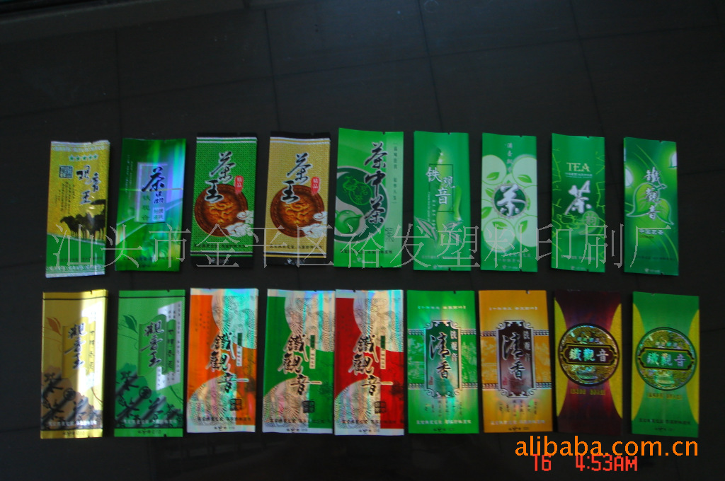 茶叶包装袋具有抽真空效果佳,透明度高,防潮性好,抗撕裂性强以及密封性,不易老化等特点,主要用于各种食品、茶叶、五金等等,其包装方式包括有平张以及卷装。同时可根据客户的实际要求来印刷产品,印刷颜色等等。可以根据用户需求印制企业LOGO商标。欢迎洽谈!