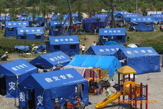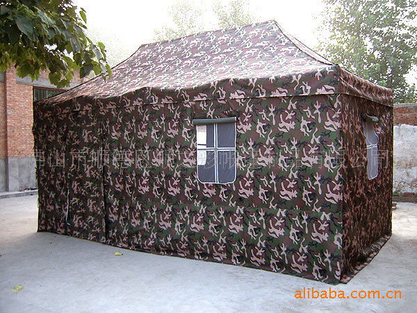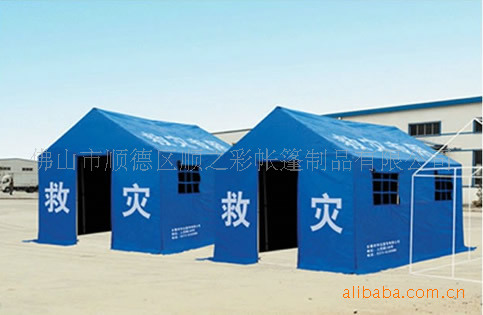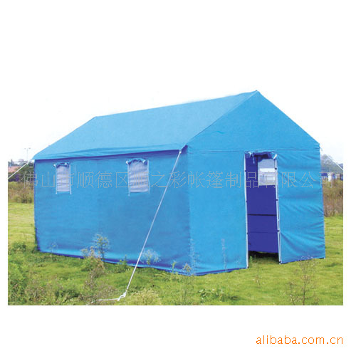 (5) 帐篷面料为天蓝色高强牛津布,门窗开启面积较大并设有纱网,具有防潮、防尘土、防蚊虫、通风等功能;