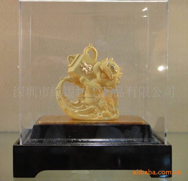 供应纯锡坊、金莱福绒沙金商务礼品摆件、龙腾福海小金龙