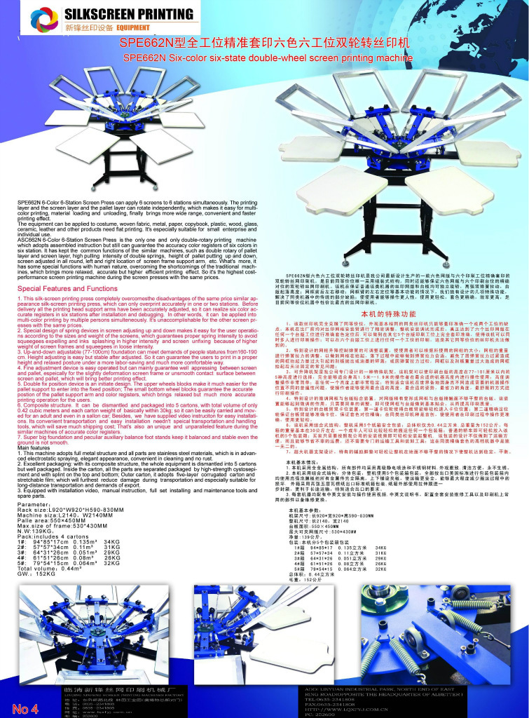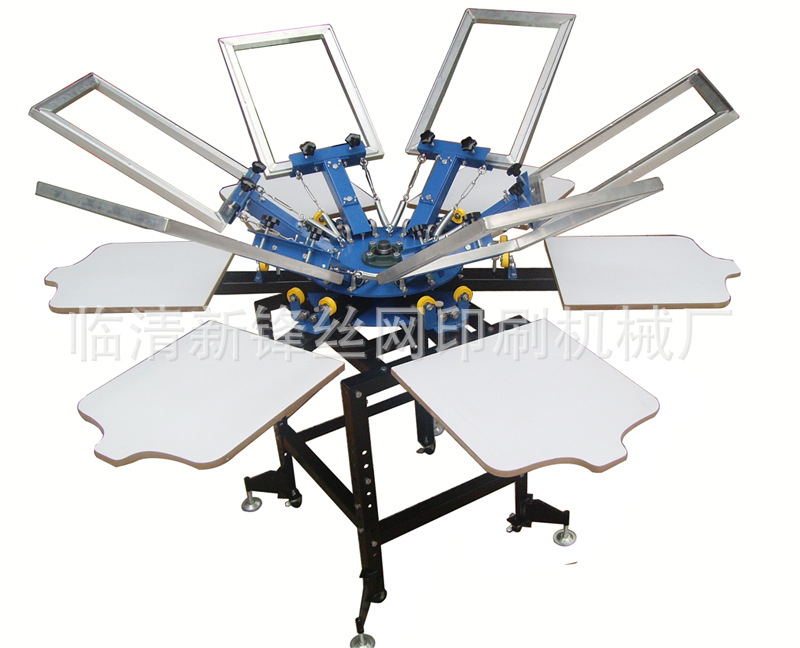 该机在XF-660C的基础上加以改进,它的工作台面及网板都可以转动,且网板可前后,左右微调,套印时对位准确方便。该机采用全钢镀铬印花头,经淬火及磨床加工处理,极大增强了印花头的耐磨损程度,。该机广泛适用于T恤,皮包,背包,布料,毛巾,皮革,等各种收缩变形量大的物品进行多色准确套印。