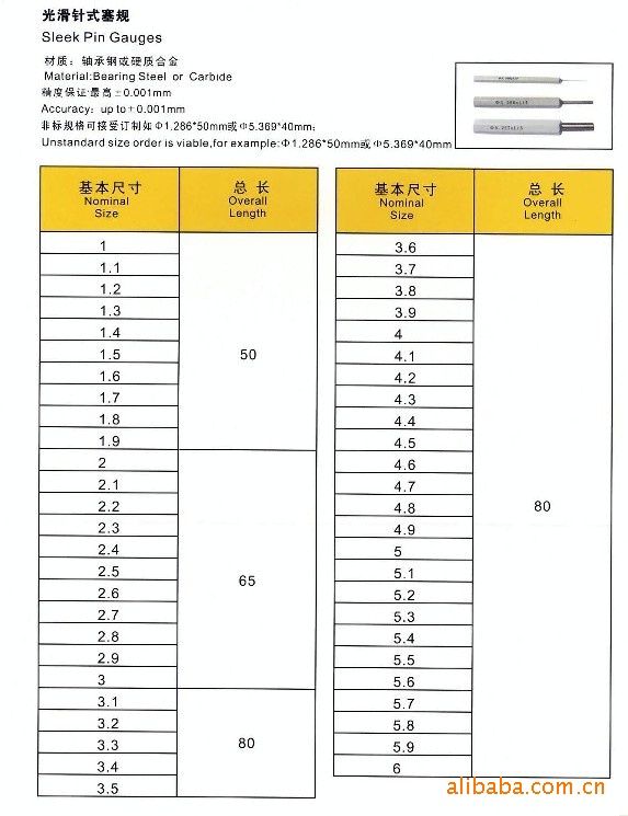 螺纹量规简介:1)螺纹量规用途:螺纹塞规用于综合检验内螺纹。螺纹环规用于综合检验外螺纹。2)螺纹量规检验:标准温度20°C、标准条件测力为零。螺纹塞规的单一中径用“三针法”,在万能测长仪上检测。螺距、半角、小径、间隙槽用万能工具显微镜检测。螺纹环规通端(T)用校对塞规TT、TZ检验;止端(Z)用校对塞规ZT、ZZ检验;螺距、半角用加工工具保证。3)主要技术指标:材料-GCr15;硬度≤3mmHRC53-60,>3mmHRC58-65。4)螺纹量规使用:A.生产车间使用新的或磨损较少的通端螺纹量规和磨损接近磨损极限的止端螺纹量规;验收部门使用接近磨损极限的通端螺纹量规和新的或磨损较少的止端螺纹量规。B.判断工作螺纹合格的螺纹量规符合所属标准,则该工作螺纹合格。C.没有其它协议,螺纹环规的验收以校对螺纹量规为准,并遵守A、B条规定。二、光面量规简介:光面量规用途:光面环规分为校对光面环规和极限光面规。校对光面环规一般采用划线定位测校,是内径长度计量的基准;用于校正或检验内径测量仪器和量具。极限光面环规分为通端和止端;用于综合测量光面圆柱工件。光面塞规(针规)用于对孔进行综合测量。我公司销售的主要标准有:1、M公制螺纹量规2、UN美标螺纹量规3、BS英标螺纹量规4、SM缝纫机螺纹量规5、G直管螺纹量规6、NPSM美标螺纹量规7、RB新标锥管螺纹量规8、PT日标锥管螺纹量规9、RP德标锥管螺纹量规10、双头光面塞规11、光面环规12、MT莫氏锥度量规13、7:24锥度量规14、销式塞(针)规