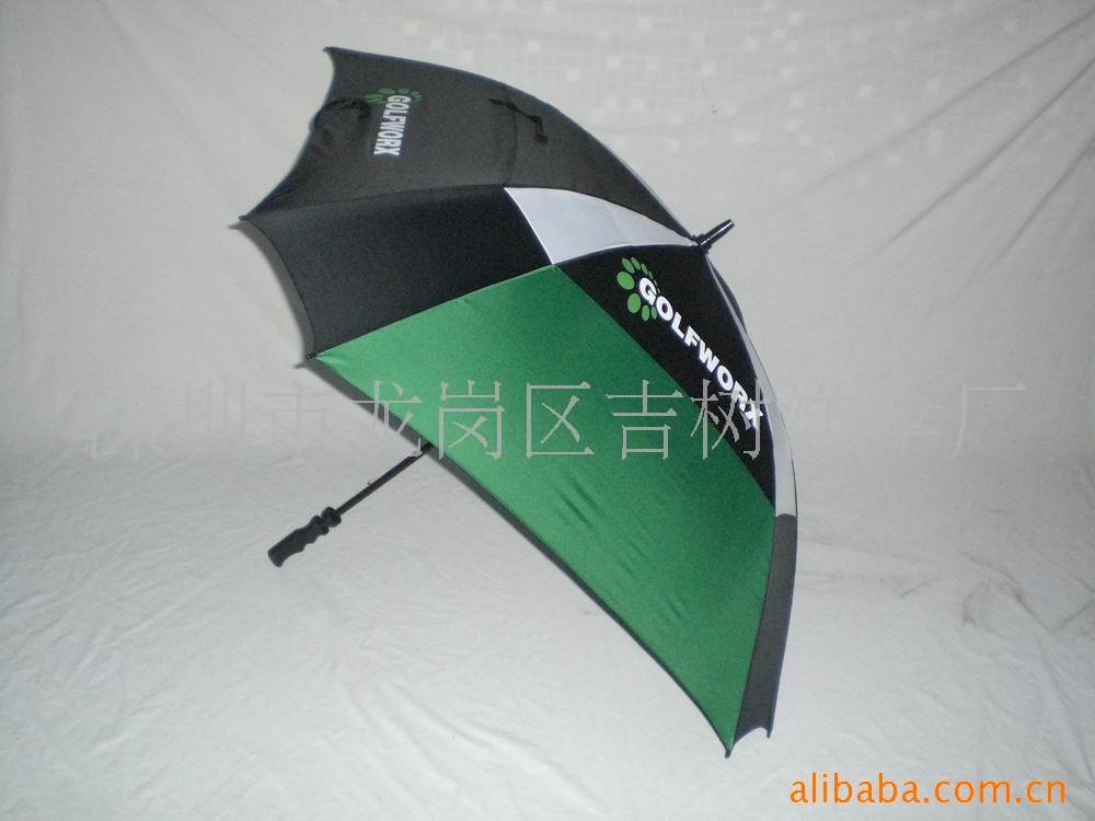 高尔夫伞最常见的有直杆手开高尔夫伞,直杆自动高尔夫伞,也有二折自开高尔夫伞等,由于伞大,往往比较兜风,一阵大风过后,力气小点的,往往拿不稳,越来越人性化的设计,将这难题较好的得到了解决,在高尔夫伞面上做了改良,常见的做法是把伞面做成双层,下面的一层伞面的顶端透空,然后上面的一层盖在下面的一层上面,比透风的孔大一些,刚好盖住,上下两层少量针线缝合,正常使用的时候,雨水进入不了伞里面,风吹过来的时候,顺差透空的顶被排了出去。 本公司是一家专业生产各种,高中低档,高尔夫伞,太阳伞,广告伞,晴雨伞,帐篷,围裙,购物袋,手袋的工厂。我们规格齐全,品种繁多。并可根据您的要求,为您量身打造最佳产品。优惠的价格、优质的产品及优良的服务是本公司对每一位客户永恒的承诺。 本公司本着“热情服务,品质为本,信誉第一”的经营理念以及“顾客至上,锐意进取”的宗旨,与多家企业建立了长期的合作关系。我们不断创新、不断追求卓越品质。产品远销港澳台及欧美各地。并得到国内外消费者的广泛认可。在全体员工的团结进取下,立足国内,放眼全球。 我们竭诚欢迎海内外新老客户携手合作,共创辉煌!