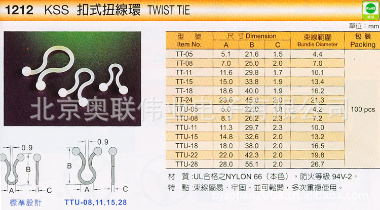 3. 特点:束线简易、牢固、可快速捆扎及解开电线,可重复使用