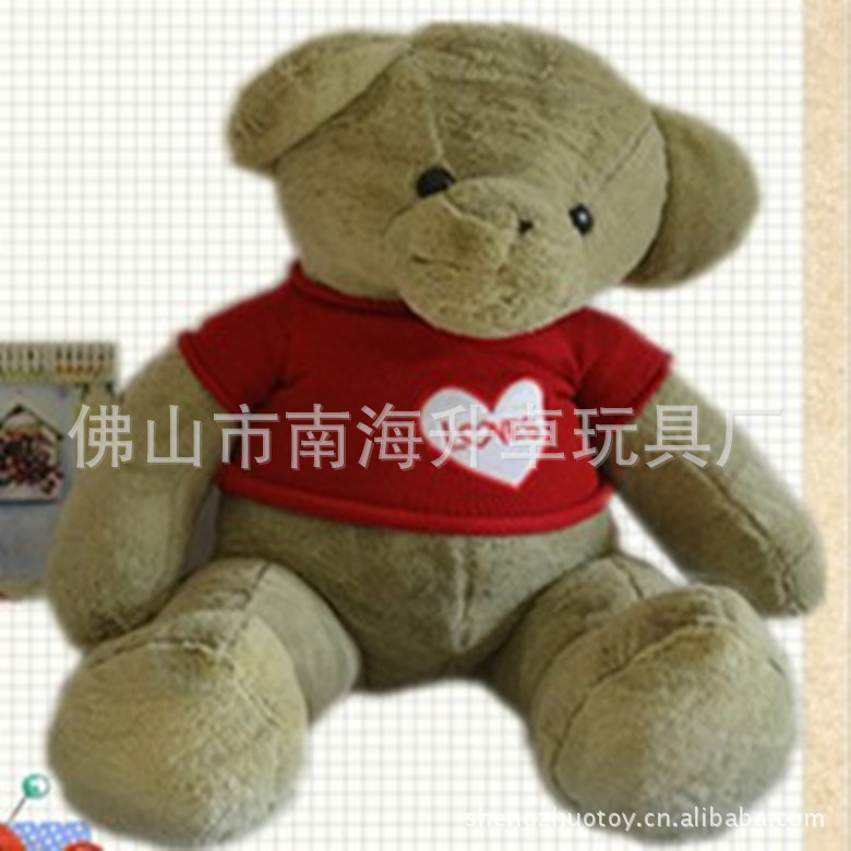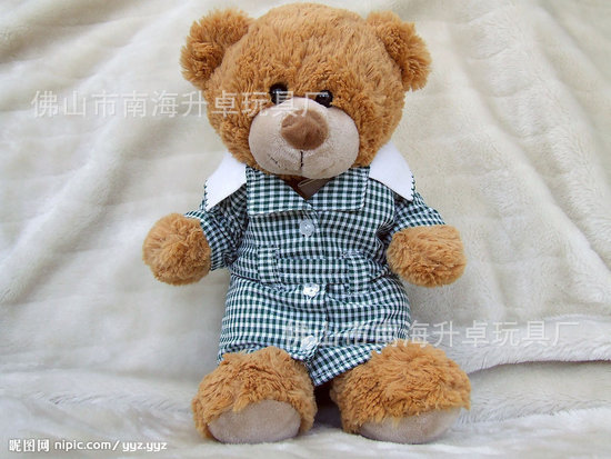 坐姿穿衣毛绒小熊,PP棉填充毛绒玩具,平丝绒材质,厂家直销,造型可爱,有多个颜色,多种动物造型可供选择,欢迎来电来图洽谈订购!