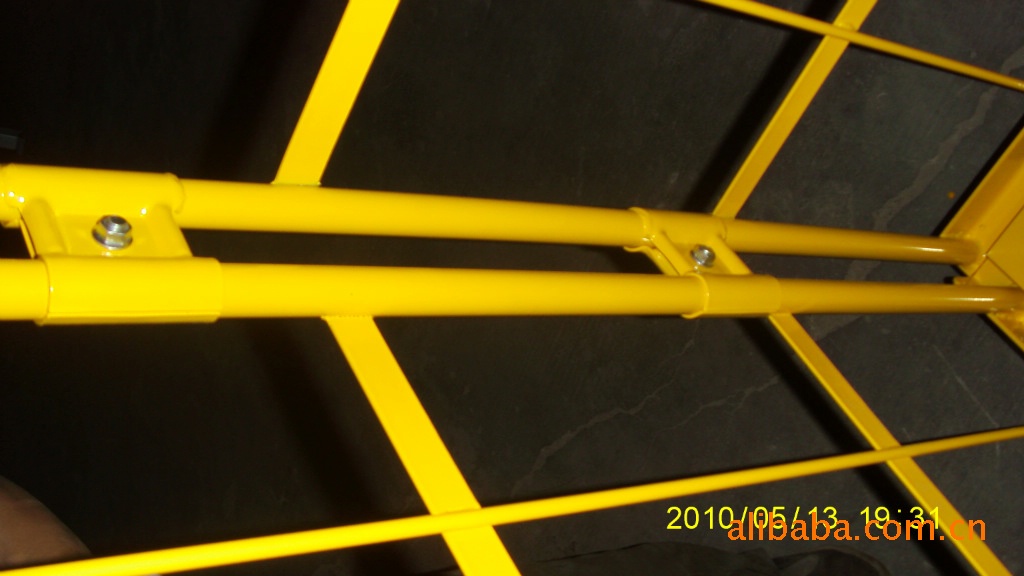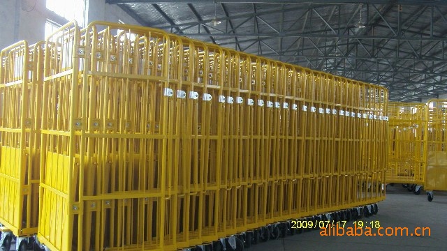 我公司专业设计和生产各种结构、各种规格、各种用途的物流台车。主要材料为:外框用直径18--25mm的圆管,网片用6.0mm冷拔条,网片与网片之间用3.0mm厚的钢板制成铁夹,通过螺丝连接在一起。 底板用1.2mm厚的钢板底部辅30mm*30mm角钢加强,且底板能够掀起。中间可以根据使用要求加钢隔板或网片,表面喷粉。各网片之间通过图中所示的、冲压成型的二块铁夹通过螺丝将网片连接。