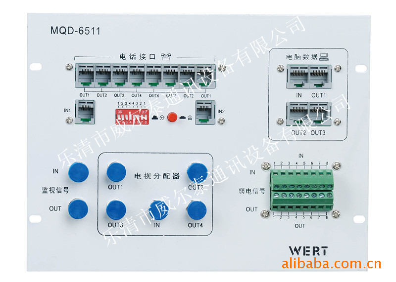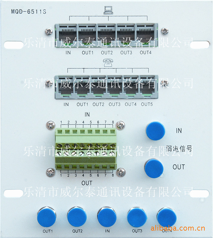 MQD-556:该模块提供2组1进4出RJ45语音|数据接口,电视1进5出,监控1进1出