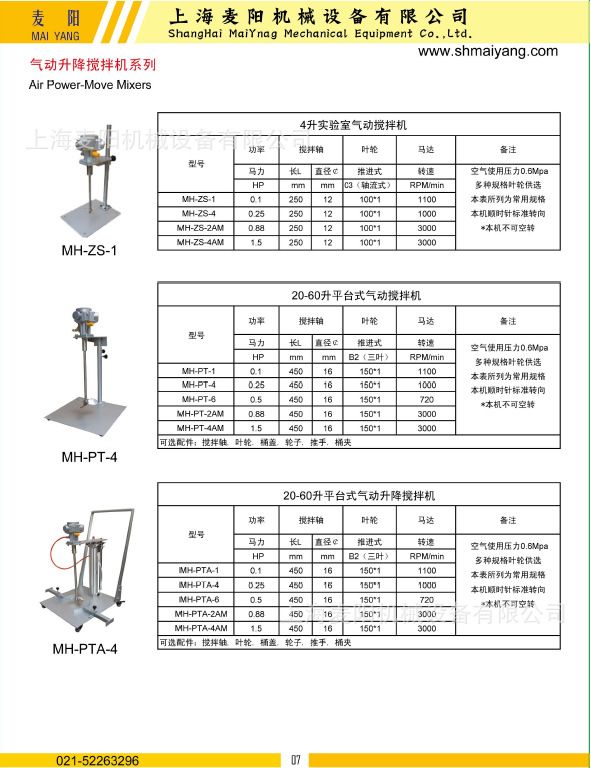 麦阳MAIYANG产品数量:气动搅拌机(防爆气动搅拌器,空气搅拌机)Air Motor Mixer用气动马达(气压马达,气功马达,风动马达,空气马达,气马达)Air Motor作驱动力。无级调速,操作简单。使用时安全防爆,长时间运转绝不会产生电火花,完全可以满足安全法规所规定的要求。可在易燃、易爆、高温、潮湿等特殊环境下连续安全工作。用于液--液,固--液,的混合,稀释。溶解,反应,乳化,分散,悬浊,防止沉降等搅拌目的。有不同功率、不同转速、不同形式(夹式,便携,可搬式气动搅拌器,平台式气动搅拌器,升降式(手动、气动)移动式气动搅拌机,的气动搅拌机(气动搅拌器,)满足您各种工况要求。适合1L,4L,20L,100L,200L,1T等容器。