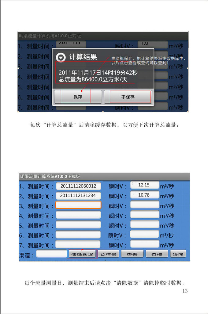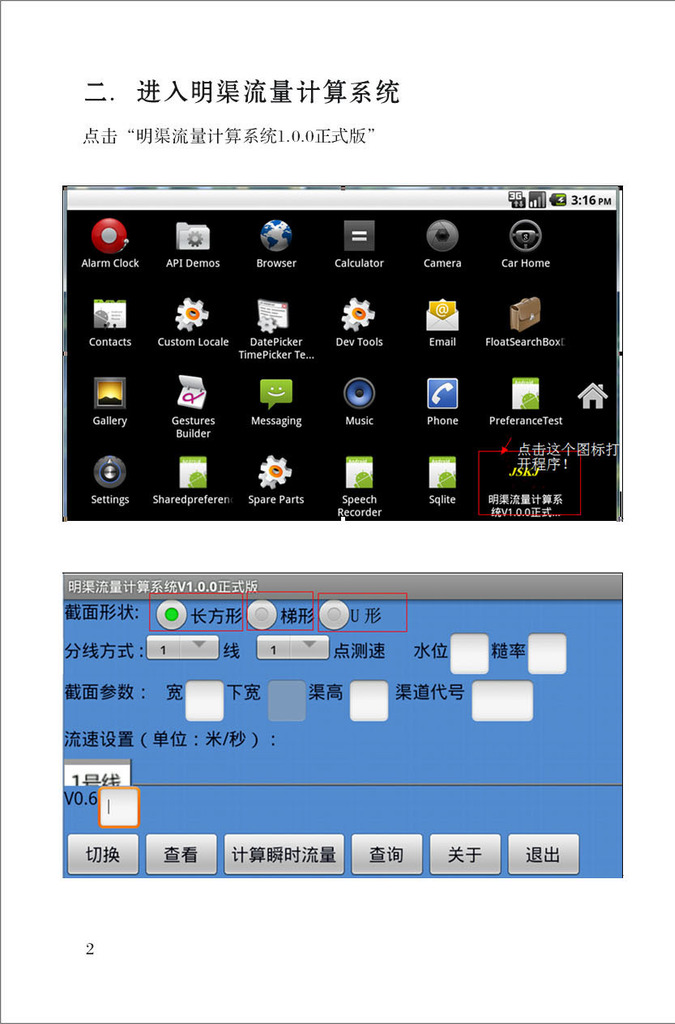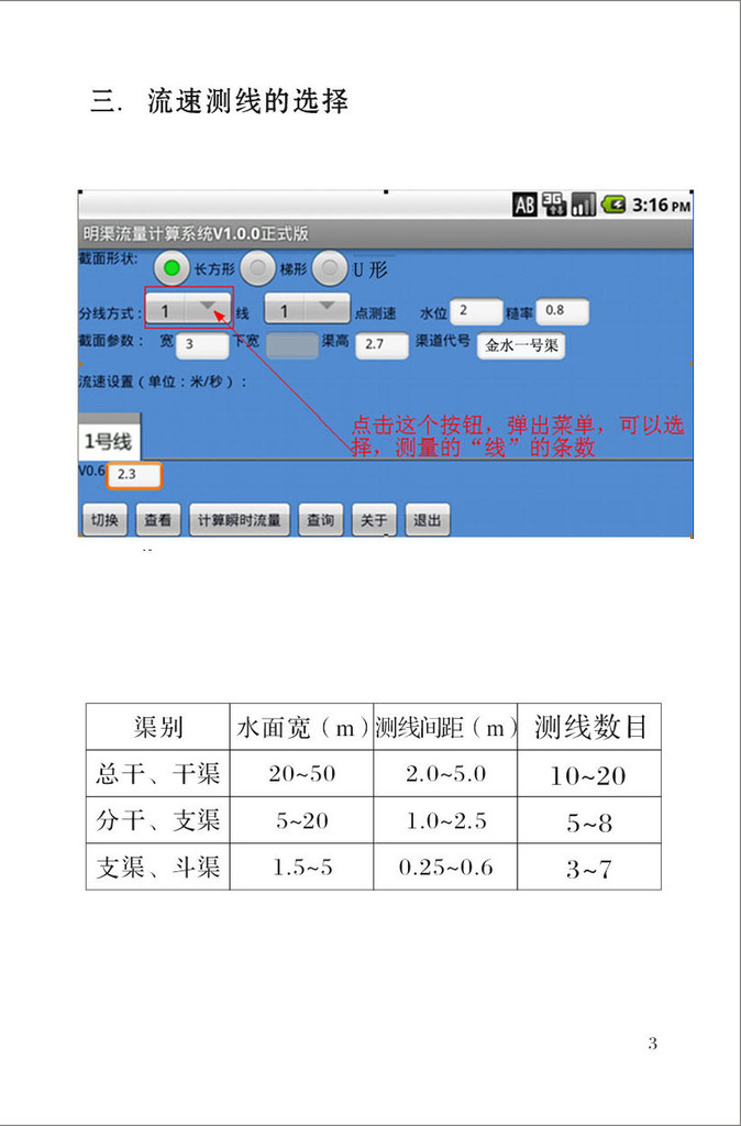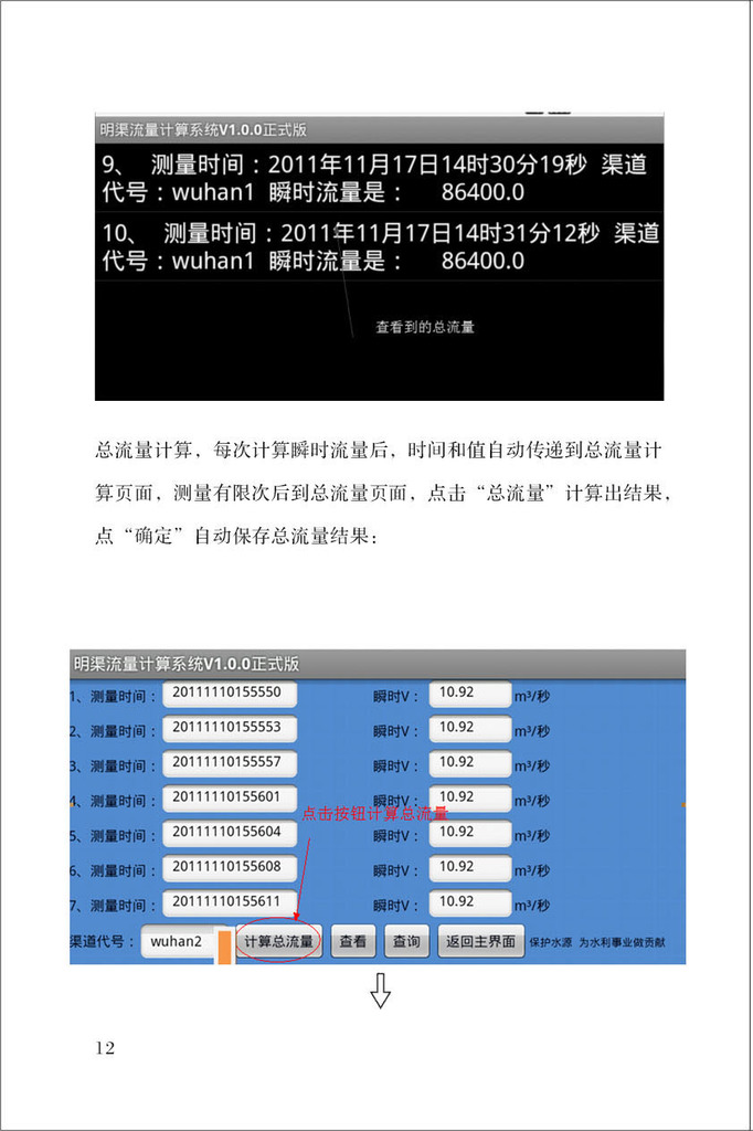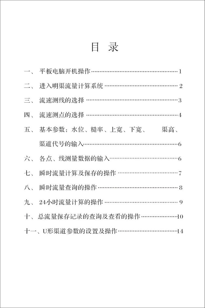 如果你有一台老式的流速仪只需花不多的钱购买本公司自主研发的平板电脑流速流量仪。通过软件可任意设置测量点(1-5点)测线(3-10线),将测量结果输入平板电脑流速流量仪,可自动计算瞬时流量和24小时累计水量。大大简化测量计算的工作量和提高计算的精度,并能通过无线网络实现数据实时传输。流速流量仪 采用先进便携式平板电脑,10寸液晶显示屏,虚拟键盘输入,大容量存储功能(可存储十年以上测量数据)并有看小说、电视、听音乐、玩游戏、聊QQ等其它完善的娱乐功能!使水文测量工作不再枯燥。使你花少量的钱就能成功升级原始的测量仪器,你不想尝试一下吗?本公司将提供完善的全程服务。平板电脑流速流量仪操作简单易学,请仔细阅读以下使用说明书。