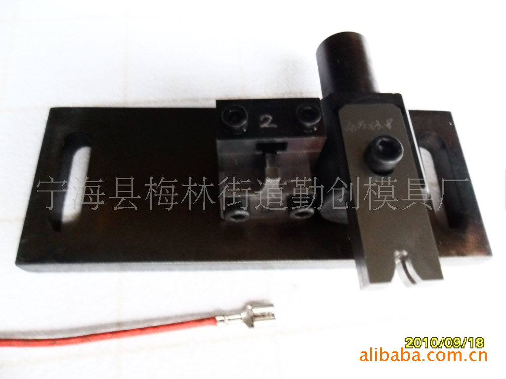 单颗端子压接模具,结构简单,操作方便,价格实惠,压接拉力强。不产生废料。可装配在桌上冲床上使用,并且大大减低了购买连续端子的资金成本,是产量较少的订单合适的选择。