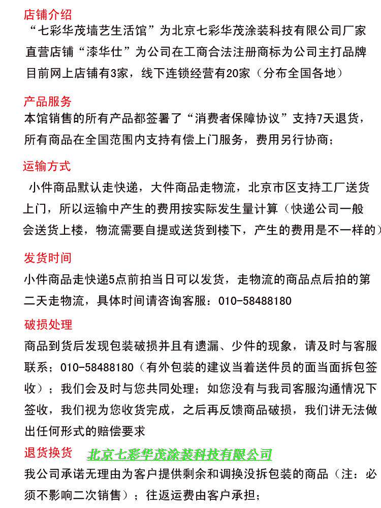 该产品采用天然原材料,优质环保,艺术肌理漆,厚浆砂质型,质感骨浆型 (喷塑型)矿粉质感型等;它代表了目前最时尚流行的DIY(Do it yourself的缩写,即手工制作)。