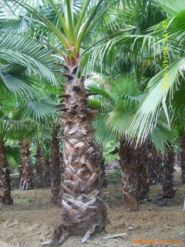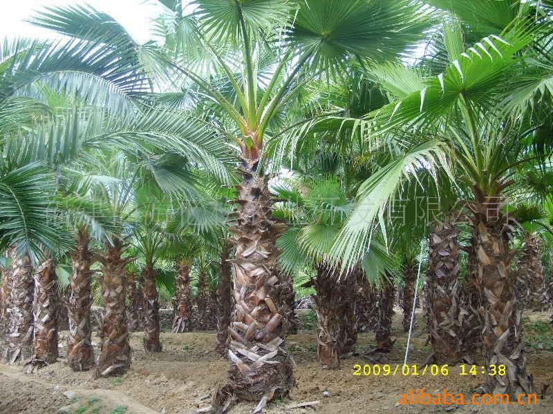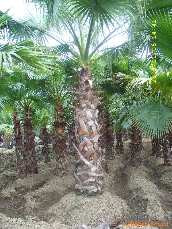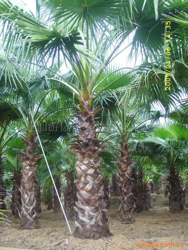 别 名:老人葵、老公仔椰子、加州葵、丝葵、华盛顿葵、华盛顿棕 详细介绍:学 名:Washingtonia filifera 别 名:老人葵、老公仔椰子、加州葵、丝葵、华盛顿葵、华盛顿棕科 属:棕榈科棕榈属形态特征:常绿乔木,树高10-25米,树干基部通常不膨大(近基部直径约75-105厘米),顶端稍细,被许多下垂的枯叶遮住,若去掉枯叶,树干呈灰色,可见明显的纵向裂缝和不太明显的环状叶痕;叶基密集,不规则;叶大型,掌状叶,黄绿至灰绿色,叶片直径1.8米,约分裂至中部而成50-80个裂片;花序大型,生于叶间,分枝3-4枝,弓状下垂。为棕榈科丝葵属大型乔木。原产美国加州、亚利桑那及墨西哥北部等地,我国热带至中亚热带为适栽地区。华盛顿棕植株耐热、耐寒性均较强,成龄树能耐受50℃高温及-12℃低温。为抗风能力最强之一。对土质要求不严,耐盐能力中等,滨海地带、海岸、沙土、微酸性土壤及石灰质土壤均可各种植.