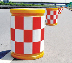 1、 防撞桶中空灌沙或加水,具有缓冲弹性,能有效吸收强大撞击力,降低交通事故程度;组合使用,整体承受力更强,更加稳固。