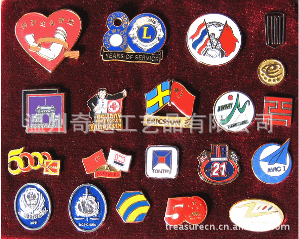 本企业主要生产各种徽章、标牌、证章、挂饰、卡片、 钮扣、景泰蓝、仿珐琅等工艺品。生产设备齐全,年生产能力可达上亿枚徽章。拥有电脑设计、制模、冲压、铸压、制卡、注塑、烤漆、珐琅、滴塑、景泰蓝、点焊、抛光、氧化、电镀等技术设备组成的一条龙生产线。主要生产设备有西德进口的全自动注塑机、先进的电镀设备及冲压床、铸锌机、电脑制卡机等其他优良配套。主要产品:标牌.铭牌.吊牌.狗牌.徽章.奖章.纪念币.匙扣.手机吊饰.项链.手链.耳环.袖口.领带夹.开瓶器.帽夹皮带扣,家私把手等首饰以及其它五金配件.