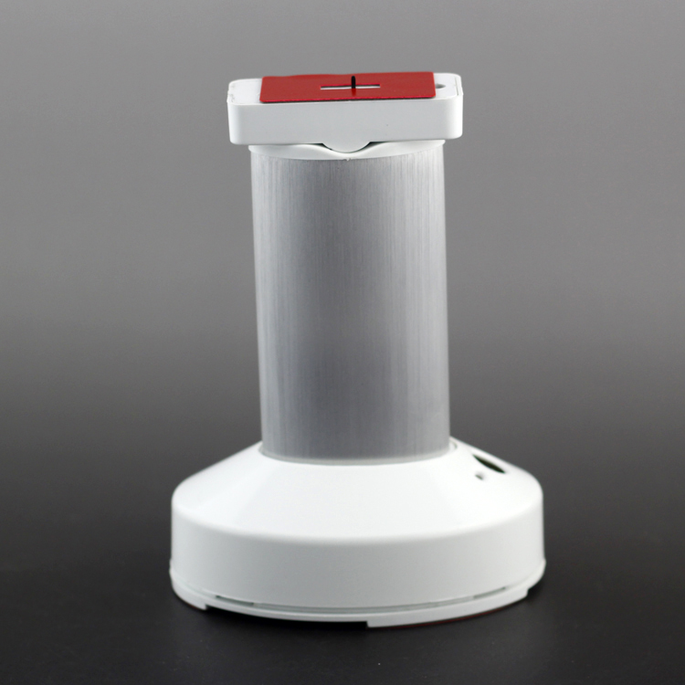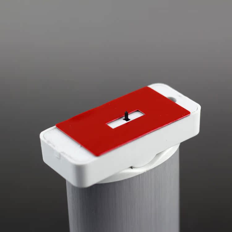 手机、数码相机、MP3、MP4、GPS等数码电子产品实际陈列于本品上,本产品由报警主机、报警探头、3M胶等组成。报警主机安装于展示架或陈列柜上,报警探头则粘附于展示产品上。顾客可以方便的从架子上取下陈列品,自由的对陈列品的功能和外观进行操作和感受,如果顾客想将陈列品拿走,报警器会立即发出持续的报警声,报警声将持续到管理人员来做复位处理为止。