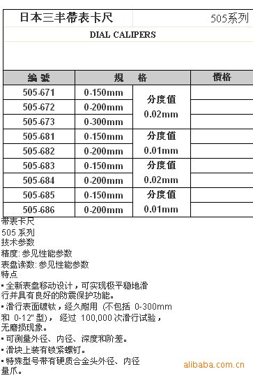 三丰带表卡尺(505-683系列)