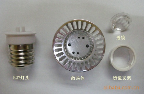 散热体+透镜+透镜支架+灯头(GU5.3,GU10,E27),