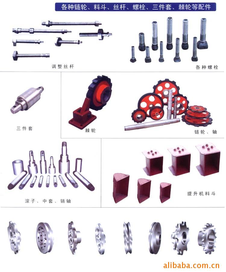 本公司专业生产水泥提升设备,(NE、TH、HL、系列)FU链运机、BLT鳞板输送机、DS链斗机、LS、GX螺旋输送机、TD型皮带输送机、XZ空气输送斜槽。公司还拥有高强度板链式套筒子链及圆环链生产线,水泥机械配件,链条、链钩、链轮、滚子、销轴、中套、料斗、拖棍、鳞板机配件、及各种磨机、破碎机非标螺丝等。