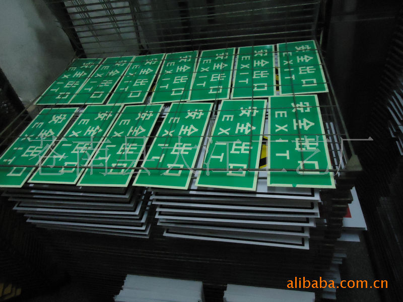4、夜光标志牌(材料有铝质夜光、PVC夜光、不锈钢夜光)又称蓄光标志牌、自发光标志牌和长余辉标志牌,就是在材料的表面上直接用夜光漆丝网印刷或贴夜光膜再丝网印刷而成的标志牌。是一种吸收太阳光、灯光等光源的光线后在无光源的情况下可以自己发光,具有优秀的应急自动发光能力,有效地增强人的识别能力,看清目标,引起警觉,为黑暗中的行人或夜间作业人员提供最有效、最可靠的安全保障。本产品激发时间短,发光和余辉时间长,亮度高,极稳定的物理和化学属性,极强环境适应性,极长的使用寿命,安全可靠,节约能源,绿色环保被广泛地应用于城市导视系统中,例如目前的城市道场所和需要起夜光效果的企业等。