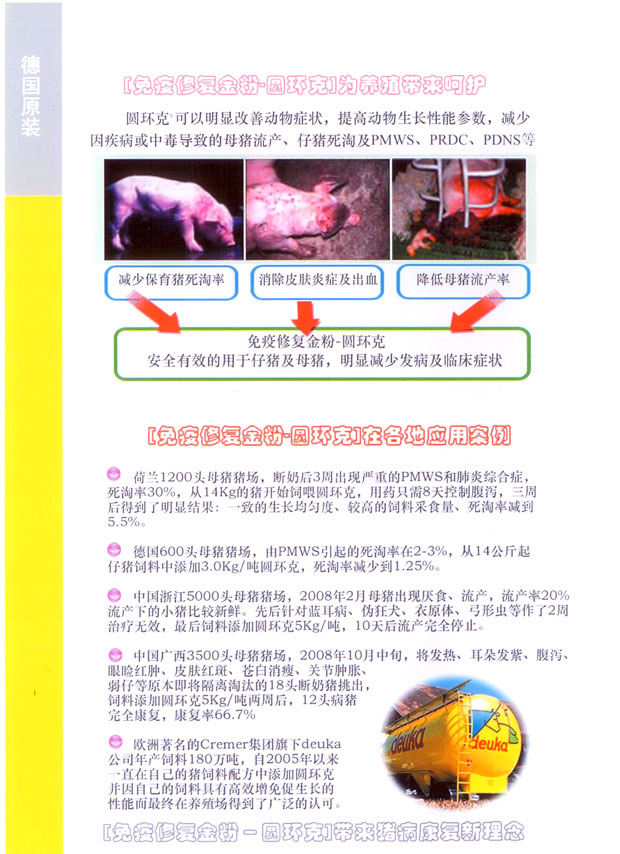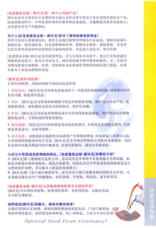 针对圆环病毒皮炎肾炎综合征有特效.保肝护肾,改善肝肠 |