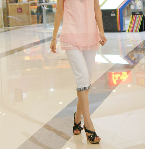 2011新款韩版女装弹力双面破卡七分裤S6303