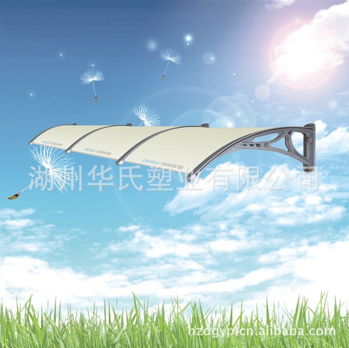 2、顶固雨篷是由支架和板组装而成,支架采用特种工程塑料添加UV抗紫外线吸收剂、抗氧化剂、改性剂等。使用大型成型设备一次性压铸成型,结构紧密,流线型设计。大规模生产,确保产品质量的稳定性和卓越性,顶固支架经久耐用,抗腐蚀,抗老化性能优于钢材。